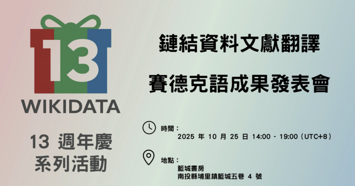 詳見:https://meta.wikimedia.org/wiki/Wikimedia_Taiwan/Wikidata_Taiwan